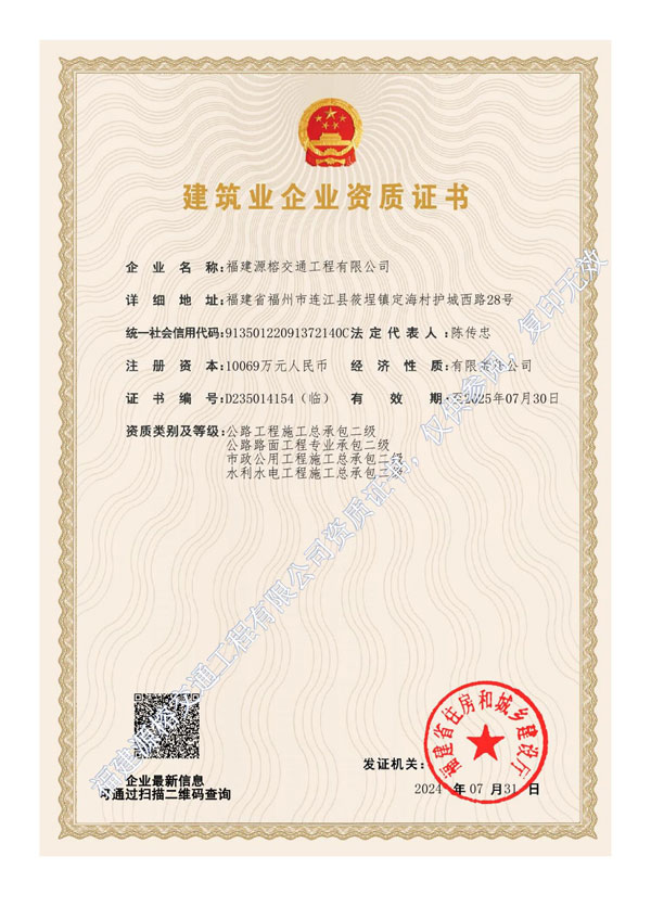 公司現已發展成集房建、裝飾裝修、市政、智能化、公路、交通工程等于一體的綜合性企業。 公司擁有各類職稱人員286人(高級工程師16人,中級工程師68人,建造師31人等)。公司擁有固定標線隊伍3隊及5套完整的劃線設備,公司還擁有多版權法反光標志生產線、道路用涂料生產線,各種工程施工運輸車輛(高空作業車、工程搶修車、護欄清洗車、標線施劃車、除線車等)總計20余輛 ...